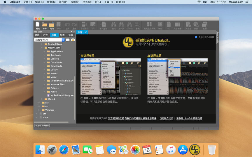 UltraEdit 20 for Mac是一款功能强大的文本代码编辑器。UltraEdit可以编辑文本、十六进制文本、ASCII 码,可同时编辑多个文件,可以进行文件比较,UltraEdit内置FTP浏览器,并支持数百种编程语言的语法高亮显示,借助集成的SSH / telnet客户端,脚本,自定义工具,宏和智能模板,UltraEdit可用于任何编码会话。本站提供UltraEdit20 mac破解版下载。